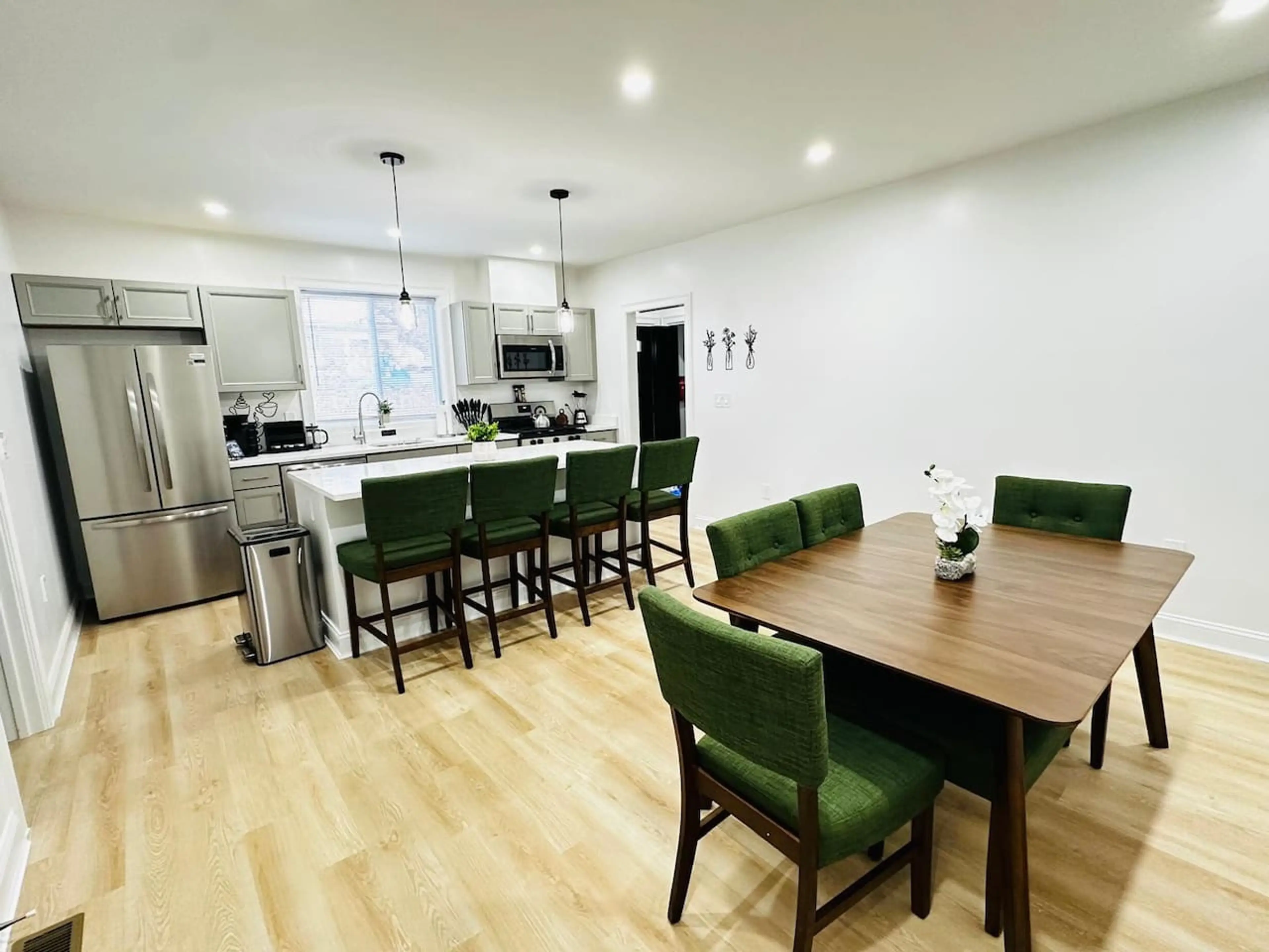 Step into a world of elegance in this 3-bedroom apartment on first floor. The living features a sofa, accent chair, and a coffee table, all crafted from wood and upholstered in neutral tones. The kitchen boasting modern appliances and a special coffee bar area. The dining area accommodates a table f...
